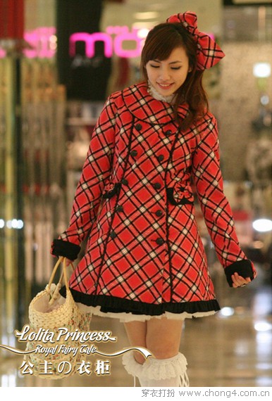 01 童话故事里的小红帽,俏皮娇小的体态、天真烂漫的个性惹人怜爱。这款红色格纹大衣,让你变身为人见人爱的小红帽。圆型娃娃翻领、腰际娇小蝴蝶结、黑色褶皱花边,每一处微小细节都透着萝莉感。