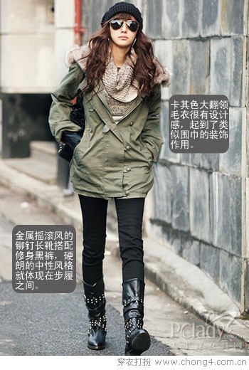 01 这是一款拥有十足人气,绝不平庸的棉衣,不仅温暖,而且具有酷酷Boyfriend样式的街头设计。棉衣下搭短靴,紧身的铅笔裤,超赞又前卫的冬天装扮,是永不过时的经典!