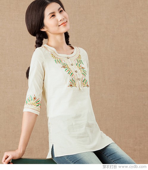 01 据说韩国的美女都是一个模子刻出来的。国民MM自然是天然的美,不过人靠衣装,不仅要穿得好看,还在穿得特别,避免千篇一律或者尴尬的撞衫。在春夏之交走清新自然的文艺路线,纯棉衬衫民族风绣花注入新奇变化,瞬间就将你的独特之处刻画。