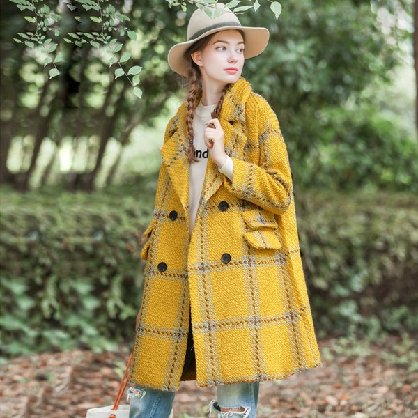01 当毛呢遇见明黄色,原本的落落大方立马就变得精巧别致起来了,明明是老套到不行的的格子纹路,却散发出来一股莫名的新鲜感,对于涉世未深的小姑娘来说,简直不要太有吸引力。