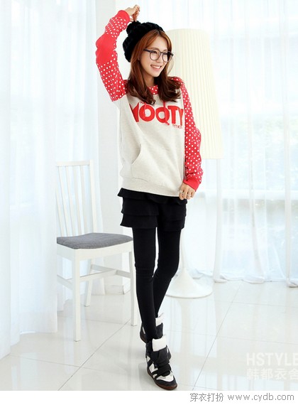 01 卫衣是最常见的连帽衫款式,浓浓的运动气息就足够带动被冷空气凝结的活力,波点的可爱俏皮更将这一动感升级。尖顶形状的连衣帽有着魔女的灵气,即便不戴在头上,让其耷拉在后背,也能增添温暖。