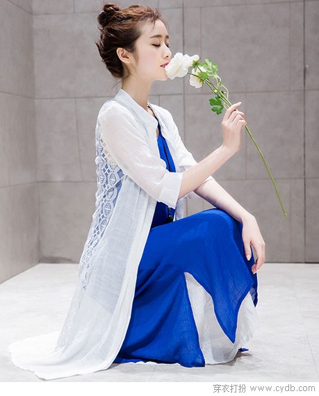 01 它是静谧的深海蓝,在阳光照进浅水区时偷偷拿走了一点小光晕点亮栖息的海域;它是软绵的胖云朵,慢悠悠的飘移在晴朗和煦的天空下懒洋洋做着日光浴。恰恰好是这样的色彩,层次多变的连衣裙内搭和镂空钩花的外披因为棉麻的存在,有了和谐的关系。