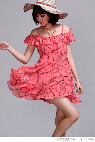 01 印花带来的田园梦想,是无论身处何地都不能忘记的,有蓝天白云青草香的诱惑,也有那抹桃红的馥郁香气。因为荷叶边的不离不弃,香肩微露,露出来的不仅仅是性感,还有一种纯真的气息在其中。