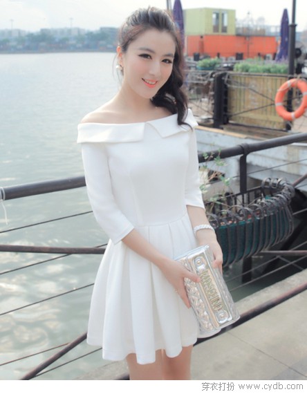 01 一眼就被这条露肩的裙子吸引了有木有!一字肩!翻领!收腰!中袖!褶皱大摆!这就是为这个十几度的天气专门设计的裙子啊~而且这个白色的可爱的一字露肩啊,真是分分钟名媛style,穿上往那一站脚下就是游艇身后就是大海啊!