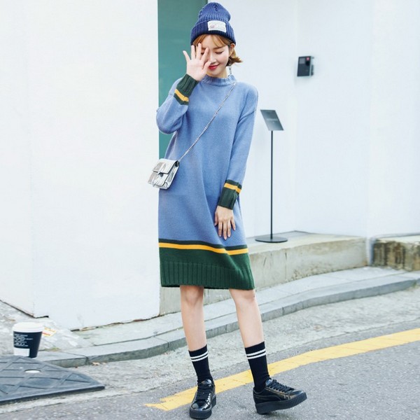 01 喜欢针织连衣裙轻松惬意的姿态,无论是色彩的碰撞还是线条的大大咧咧都能让人和青春联系在一起。蓝色的灵动与深绿的低调夹杂着明黄的温暖,这是二十岁才能激发最大活力的色彩碰撞啊。