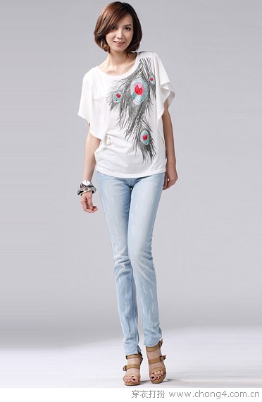 崇尚自然简约,提倡环保穿衣方式,厌倦了过于繁复杂乱的混搭叠穿,偶尔偷偷懒,为自己准备一身最简单的装束,利用最常见的牛仔裤+高跟鞋,打造出时尚清新的休闲风尚。