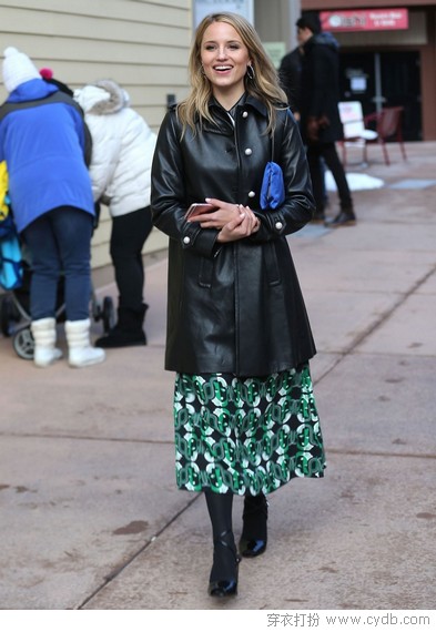 轻盈曼妙的印花裙摆点亮全黑造型,是耐得住寒冷的印花裙层次穿搭方法。