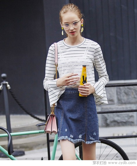 01 经典的单品穿的人多了,难免会有烂大街的嫌疑,条纹也不例外,条纹控们要想与众不同,就得运用独一无二的亮点脱颖而出,高调的荷叶边衣袖自带万种风情,与戏台上的水袖有异曲同工之妙,再配上洁白蕾丝,极大平衡了条纹的休闲味道,平添无限柔美。