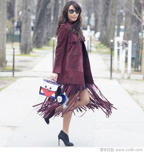 麂皮绒流苏外套,内搭紧身裙或者衬衫+短裤,写满个性的篇章。